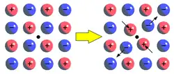 L. D. Landau[2] y S. I. Pekar[3] sentaron las bases de la teoría de los polarones. Una carga situada en un medio polarizable se verá apantallada. La teoría de los dieléctricos describe el fenómeno de la inducción de una polarización alrededor de una carga. La polarización inducida seguirá la carga cuando ésta se mueva a través del medio. La carga, junto con la polarización inducida, se considera como una única entidad, a la que se denomina polarón.