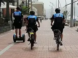 Además de vehículos motorizados como turismos radiopatrullas, furgones carrozados y motocicletas, también han hecho uso de bicicletas, segway y caballos.