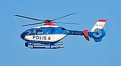La policía sueca tiene helicópteros como unidades de apoyo. Están encargados principalmente de deberes de observación y búsqueda. Son utilizados normalmente en las principales ciudades de Suecia (Estocolmo, Gotemburgo, Östersund y Boden). Los utilizados en la actualidad son de la gama Eurocopter EC-135.