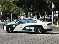 Dodge Charger de la policía de la Ciudad de México, con esquemática usada del 2012 al 2018. -