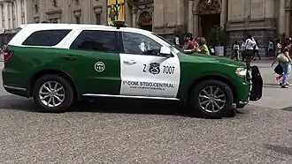 Carabineros de Chile es una institución policial, tiene jerarquías, grados y también es uniformada. También se le llama Policía Uniformada, y a sus miembros de se les llama simplemente Carabineros. La institución tiene por misión salvaguardar el orden público, la seguridad pública interior y hacer respetar las leyes.
