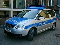 Debido a una idea de usar el mismo color de uniformes y vehículos en toda la Unión Europea, la policía alemana realizó en los últimos tiempos una pequeña modificación en el color, de verde a azul. Hamburgo fue el primer Estado federado en efectuar esta transición. Antes de la reunificación alemana del 3 de octubre de 1990, la República Democrática Alemana contaba con la Volkspolizei.