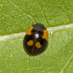 - ↑ Creed E.R. 1971. "Melanism in the Two-spot Ladybird, Adelia bipunctata, in Great Britain". In E. R. Creed (ed.), Ecological Genetics and Evolution. Oxford: Blackwell.