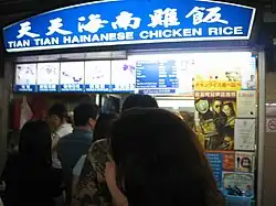 El pollo con arroz de Hainan es un plato de origen chino relacionado más frecuentemente con la gastronomía de Singapur o Malasia, si bien también se vende comúnmente en la vecina Tailandia, y está presente en Hainan, en la propia China. Así llamado por sus raíces en la cocina de Hainan y por su adopción por parte de la población emigrante china de Hainan en la región de Nanyang (actual sureste asiático), la versión presente en la zona de Singapur combina elementos de las gastronomías cantonesa y de Hainan junto con gustos culinarios del sureste asiático. El plato se popularizó en Singapur en los años 1950 por Moh Lee Twee, cuyo Restaurante Pollo con Arroz Swee Kee funcionó de 1947 a 1997.[1]