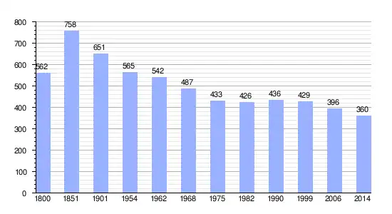 Los datos demográficos contemplados en este gráfico de la comuna de Poncé-sur-le-Loir[4] se han cogido de 1800 a 1999 de la página francesa EHESS/Cassini, y los demás datos de la página del INSEE.[5]