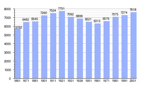 | Gráfica de evolución demográfica de Ponte Buggianese entre 1861 y 2001 |