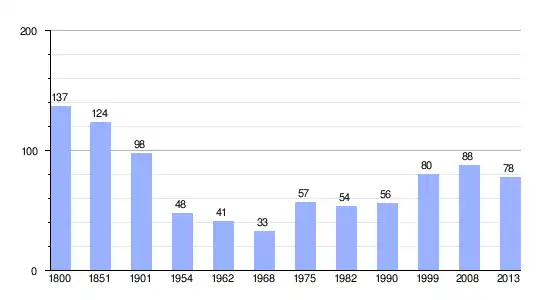 | Gráfica de evolución demográfica de Ponthoux entre 1800 y 2013 |