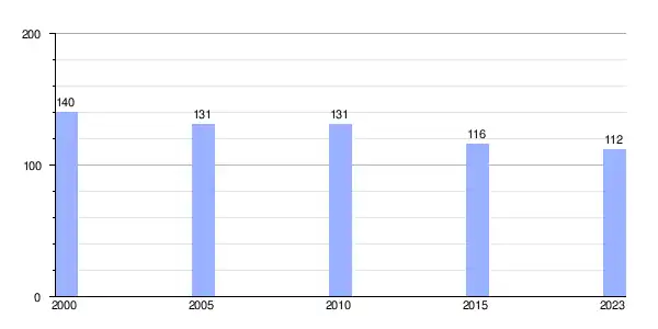 | Gráfica de evolución demográfica de Porquera entre 2000 y 2023 |
