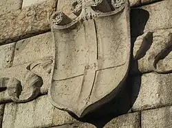 El león de San Marco estuvo destruido por los Giacobini en el 1801 y a continuación sustituido con un grupo compuesto del águila imperial bicipite (luego quemada) y de una corona.