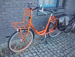 Una bicicleta utilitaria holandesa con un portaequipajes sobre la rueda trasera. -