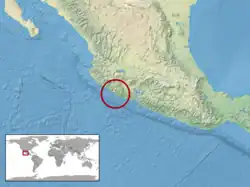 Oeste de México. Esta especie era conocida por muchos años solamente de la localidad tipo, 19,2 km al noreste de Tecomán, municipio de Ixtlahuacán, Colima.[2]