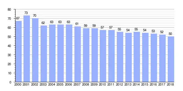 | Gráfica de evolución demográfica de Pousadoiro entre 2000 y 2018 |