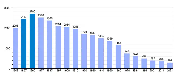 Población de derecho según los censos de población del INE     Población de hecho según los censos de población del INEEntre el censo de 1981 y el anterior, crece el término del municipio porque incorpora a Castil de Lences y Lences.[6]