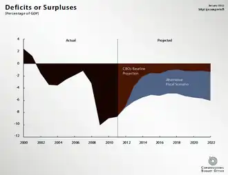 - ↑ Staff (November 8, 2012). "Economic Effects of Policies Contributing to Fiscal Tightening in 2013". Congressional Budget Office. Retrieved February 25, 2013.