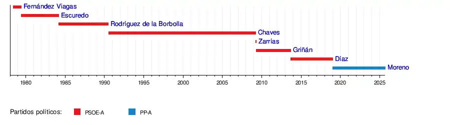 Presidente de la Junta de Andalucía[7] Inicio del mandato Fin del mandato Duración del mandato Legislatura Gobierno