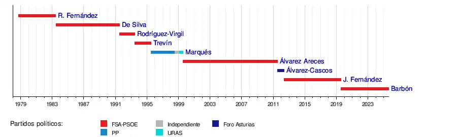 Desde julio de 2019 el titular del cargo es Adrián Barbón Rodríguez, de la Federación Socialista Asturiana.