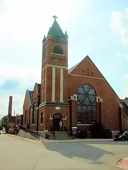 La construcción comenzó en 1892 y se completó en 1893. Se considera uno de los mejores ejemplos de la ciudad del estilo arquitectónico románico richardsoniano.[3] Un aspecto del edificio que lo hace especialmente notable son sus ventanas. La iglesia cuenta con enormes vitrales que fueron hechos a mano en Bélgica y ensambladas por trabajadores locales originarios de ese país.[1]
