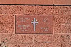 Sin embargo, el domingo 7 de mayo de 2000, el edificio de la iglesia se incendió y se quemó hasta los cimientos.[2] El fuego probablemente se originó por un cable eléctrico defectuoso. Solo se pudieron recuperar algunos artículos de la iglesia de 1903, incluidos los registros oficiales de la iglesia, algunos de los platos y la plata, algunas de las vidrieras y algunos muebles, incluido un banco instalado originalmente en la iglesia de 1854.[2]