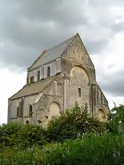 La iglesia sufrió las consecuencias del abandono. En 1635 hay constancia de su estado de ruina. Las piedras se desmontaban y se empleaban en otras construcciones. El edificio perdió solidez y ante el riesgo de derrumbe en 1749 el obispo de Bayeux autorizó el derribo de la nave y el transepto.