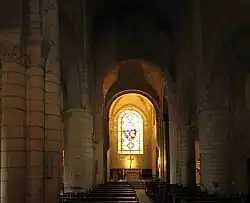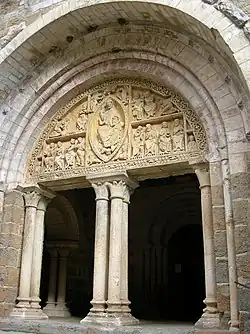 La iglesia del priorato es un antiguo edificio del siglo XI, de tres naves y tres ábsides, el central cuadrado y los laterales semicirculares y encarados con las naves laterales. El lateral norte tiene unas capillas añadidas. El campanario es de base cuadrada. En el siglo XII se añadió un nártex con una portada de medio punto, en el tímpano de la cual hay un hermoso relieve centrado por un pantocrátor dentro de una mandorla. Este tímpano de grandes dimensiones está soportado por columnas dobles en los extremos y un grupo de cuatro en el centro. El Pantocrátor central está rodeado por los símbolos de los cuatro evangelistas, al lado se encuentran los doce apóstoles dispuestos en dos registros superpuestos y acompañados de ángeles. La cenefa que la rodea tiene decoración vegetal, con pequeños animales.