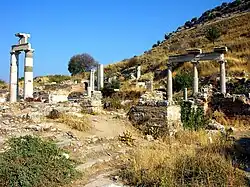 - ↑ a b c d e Scherrer, Peter, ed. (2000). «Ephesus. New Guide». Authorised by Österreiches Archäologisches Institut and Efes Müzesi Selçuk (Graphis Ltd): 84-86. ISBN 975-807-036-3.