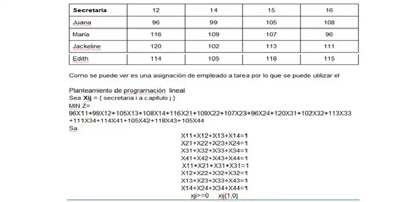 Si entonces se asigna el trabajador a la tarea y si entonces no se asigna el trabajador a la tarea . Cij: Costo de asignar al trabajador i la tarea j.
