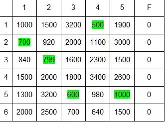 Paso 5: Encontrar el mínimo valor de los elementos no cubiertos y restarlo a todos los elementos no cubiertos, y sumar este valor a cada elemento que se encuentre en la intersección de una línea horizontal con una línea vertical.