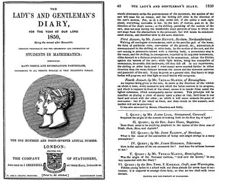 - Dudeney, H.E. (1917), «Amusements in Mathematics», Nature (New York: Dover) 100 (2512): 302, Bibcode:1917Natur.100..302., S2CID 10245524, doi:10.1038/100302a0.