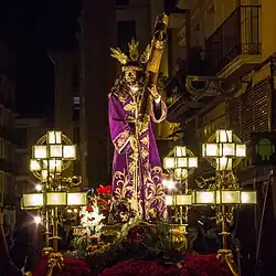 El paso de la Dolorosa y el de Jesús con la Cruz a Cuestas se colocan frente a frente; antes las cofradías han compartido toques de tambor. Tras una prédica, la Coral de Santa Engracia entona cánticos pasionarios y, finalizado el Hecho, una tras otra, las cofradías van a recogerse en San Cayetano.