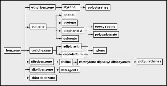 Productos químicos producidos a partir de benceno benceno - el hidrocarburo aromático más simple.