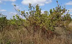 Las hojas son de color verde azulado y peludas en la base en la madurez. Las flores generalmente en grupos de 3 o 4. La fruta es una núcula densamente peluda. Arbusto muy ramificado llega a convertirse en árbol frondoso de 1-3 (-5) m de alto; con tronco principal rugoso, de 30 cm, con corteza fisurada irregular marrón-negro.