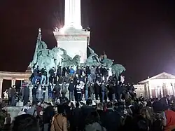 - ↑ «Demonstrators attack Fidesz HQ». Politics.hu. 27 de octubre de 2014. Archivado desde el original el 10 de junio de 2017. Consultado el 28 de mayo de 2015.