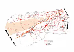 El Circuito Norte se enlaza con la Carretera Central en Guanajay. Una nueva autopista une la Autopista Nacional con el nuevo puerto del Mariel, en la margen occidental de la Bahía del mismo nombre. El Circuito Sur de la antigua Provincia de La Habana, nace en Artemisa y enlaza esta ciudad con los municipios de Alquízar y Güira de Melena, prosiguiendo hacia el puerto de Batabanó en la actual Provincia de Mayabeque. En el este, la Autopista de San Antonio une a ese municipio con la capital del país con prolongaciones hacia Güira y Alquízar.