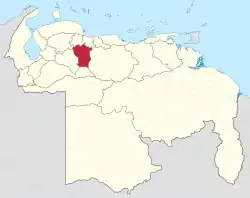 ![]() Localización de la provincia de Cojedes en Venezuela | |||||||||||||||||||||||||||||||