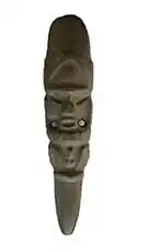 La pieza original, hallada en 1860 por un oficial del Ejército Español en una de las lomas alrededor de Holguín, es una obra excepcional dentro del arte indígena cubano. Presenta una figura antropomorfa masculina con diadema y brazos cruzados sobre el pecho, mide aproximadamente 350 mm de largo, 76 mm de ancho y 48 mm de grosor.[4]