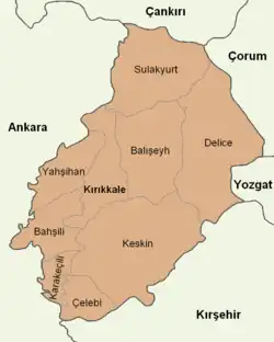 La provincia de Kırıkkale se divide en 9 distritos (el distrito de la capital en negrita):[1]