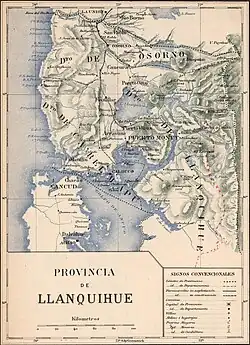 - ↑ Echeverría y Reyes, Aníbal (1888). «Provincia de Llanquihue» (PDF). Geografía política de Chile, ó sea, recopilación de leyes y decretos vigentes sobre creación, límites y nombre de las provincias, departamentos, subdelegaciones y distritos de la República. tomo ii. pp. 35-45. Resumen divulgativo (18 de febrero de 2020).