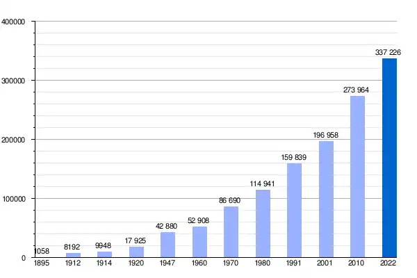 El censo 2022 informó una población de 337.226 habitantes con un ritmo menor de crecimiento poblacional respecto del censo anterior. Además, se registraron 170.093 mujeres y 167.133 hombres[12]. El crecimiento total fue del 23.1% y la densidad aumentó a 1.4 habitantes por kilómetro.[13]