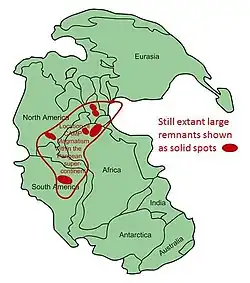- ↑ a b McHone, J. G. (2000). «Non-plume magmatism and rifting during the opening of the central Atlantic Ocean». Tectonophysics (Elsevier) 316: 287-296. ISSN 0040-1951.