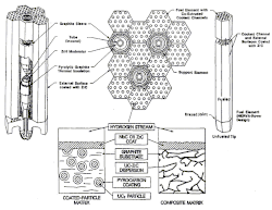 Las pruebas indicaron que las pilas de combustible de materiales compuestos serían buenas para un funcionamiento de dos a seis horas a 2.500 a 2.800 K (2.230 a 2.530 °C), que los combustibles de carburo darían un rendimiento similar a 3.000 a 3.200 K (2.730 a 2.930 °C), suponiendo que los problemas de agrietamiento pudieran superarse con un diseño mejorado. Para diez horas de funcionamiento, la matriz de grafito se limitaría a 2.200 a 2.300 K (1.930 a 2.030 °C), el compuesto podría llegar a 2.480 K (2.210 °C) y el carburo puro a 3.000 K (2.730 °C). Así, el programa de pruebas terminó con tres formas viables de pila de combustible.[93]