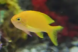 - ↑ a b c «Squarespot Anthias (en inglés)». Georgia Aquarium. Archivado desde el original el 17 de diciembre de 2017. Consultado el 5 de junio de 2020.