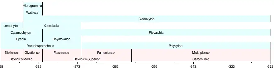 - Distribución temporal de los géneros pertenecientes al orden Pseudosporochnales.