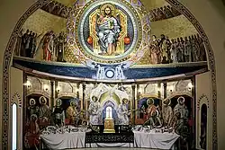 El interior de la iglesia consta de tres naves divididas por arcos de distintos tamaños. En su interior pueden observarse varios frescos del siglo XIII, descubiertos tras la restauración realizada en los años 90. En la mencionada restauración el altar mayor fue recubierto por un fresco de estilo bizantino realizado por Boris Lugovskoy.
