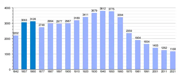 | Gráfica de evolución demográfica de Puebla de Alcocer[6] entre 1842 y 2021 |