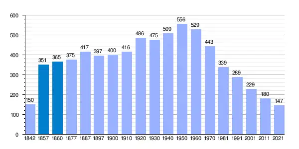 | Gráfica de evolución demográfica de Puebla de Yeltes[7] entre 1842 y 2021 |