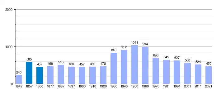 | Gráfica de evolución demográfica de Puebla del Prior[3] entre 1842 y 2021 |