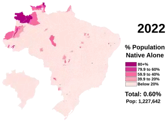 ![]() Brasileños indígenas (solos/una sola raza) en 2022 | ||