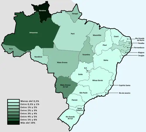 - ↑ Instituto Brasileiro de Geografia e Estatística (ed.). «Brasil tem 1,7 milhão de indígenas e mais da metade deles vive na Amazônia Legal» (en portugués). Consultado el 8 de octubre de 2023.