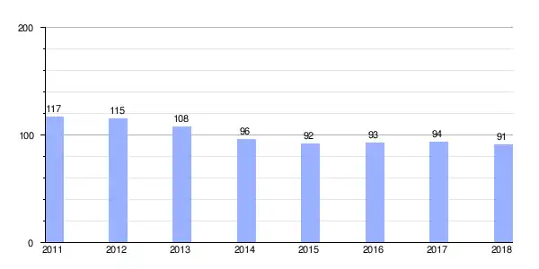 | Gráfica de evolución demográfica de A Ponte entre 2011 y 2018 |