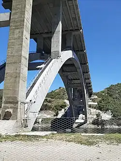 El distanciamiento entre pilas apeadas en el arco es de 20 m . La estructura en arco es doble, con sección transversal de 2,5 x 2,75 m cada uno. Los arcos son huecos, con separación entre ellos de 14,2 m y los mismos están unidos por vigas traviesas de sección 1,5 x 2 m cada 20 m en planta. Las pilas son dobles también de sección 2 x 2,5 m huecas salvo la 1 que es de 1 x 2,5 m y las pilas más altas se vinculan con traviesas de sección 1,5 x 2 m.